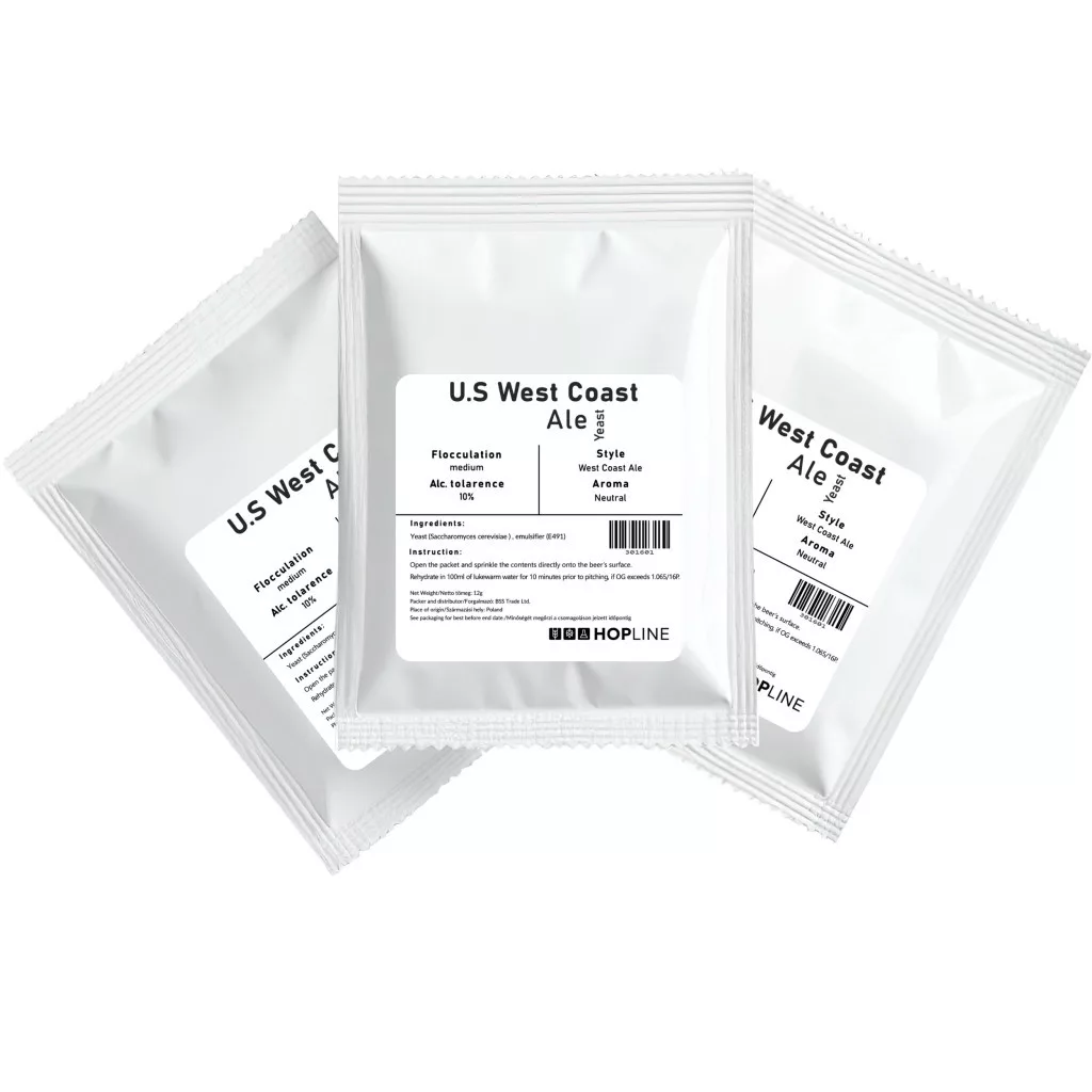 Brewline U.S. West Coast Ale wyhodowany z tego samego szczepu, co szczepy US-05 i BRY-97. Szczep ten jest naprawdę wszechstronny. Fermentuje piwo zrównoważone, rześkie i czyste. W szklance tworzy trwałą pianę. Jest to popularny wśród piwowarów, łatwy w użyciu szczep.