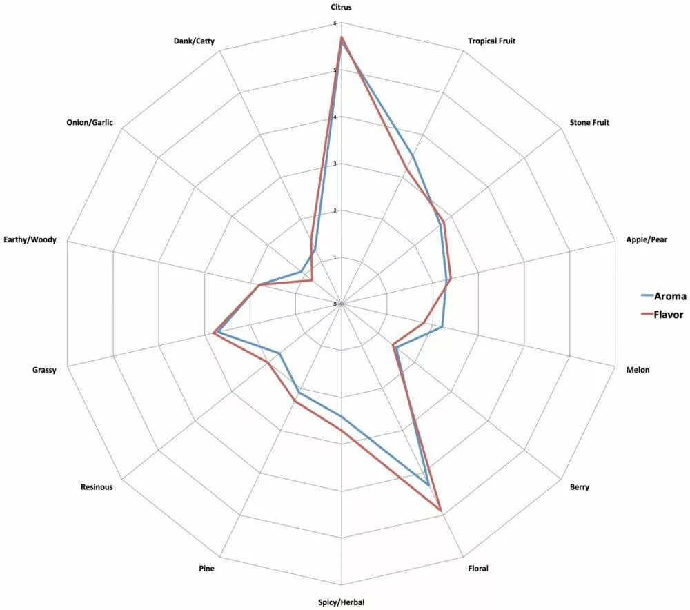 Chmiel eksperymentalny, jak sama nazwa wskazuje, miał na celu stworzenie chmielu o silnym cytrusowym aromacie. Warto to sprawdzić: Tutaj możesz przeczytać pełny opis (angielski)