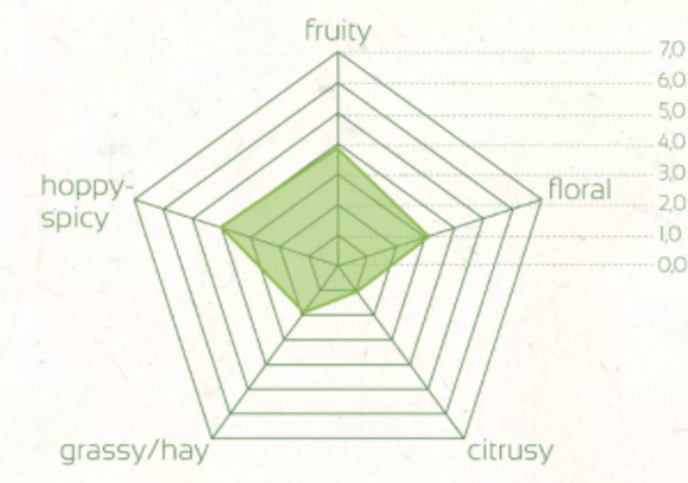 Kwas alfa 12-17 % Kwas beta4.5-7 % Co-humolon24-30 % Zawartość olejków1.9-3 %