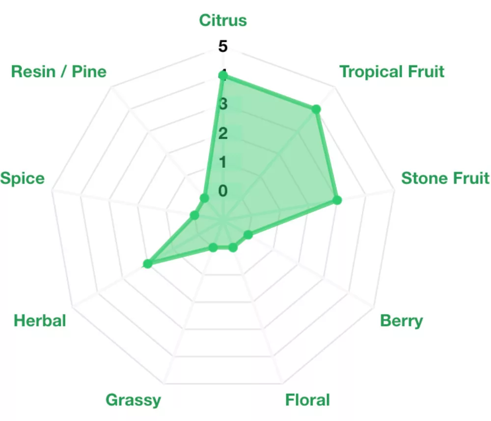 Niezwykle obiecująca odmiana chmielu z Nowej Zelandii. Powstała w wyniku krzyżówki odmian Waimea™ i Pacific Jade. Charakteryzuje się bardzo intensywnym aromatem owoców pestkowych i tropikalnych. Jej aromaty ujawniają się szczególnie w późnej fazie chmielenia, w wirówce oraz przy chmieleniu na zimno. Warto również zapoznać się z: Tutaj można przeczytać pełny opis (w języku angielskim)