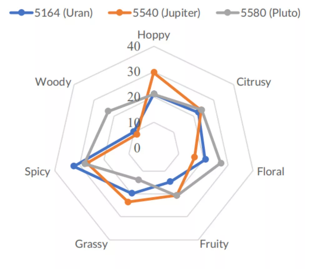 To czeski chmiel nowej fali, który pojawił się po raz pierwszy w 2020 roku (!). Czeski instytut hodowli chmielu od dziesięciu lat postawił sobie za cel hodowlę nowych chmieli aromatycznych. W 2020 roku pojawiło się 5 odmian: Ceres, Eris, Uran, Jupiter, Pluto. Najbardziej obiecujący z nich to Uran, ze względu na wyjątkowo intensywne aromaty. Jest przede wszystkim mocno korzenny, a jednocześnie cytrusowy i kwiatowy. Warto to również sprawdzić: Tutaj można przeczytać pełny opis (angielski)