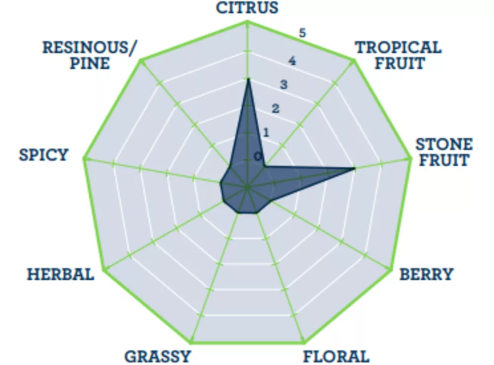 Odmiana chmielu powstała w wyniku skrzyżowania odmian Hallertau Mittelfrüh i Liberty. Dodając chmiel w ostatnich dwóch trzecich gotowania, nuty cytrusowe schodzą na dalszy plan, a na pierwszy wysuwają się aromaty pestkowe. Warto również zapoznać się z: Tutaj można przeczytać pełny opis (w języku angielskim)