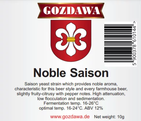 Gozdawa Noble Saison to najsłynniejszy szczep drożdży stosowany w stylu piwa Saison, pochodzący z regionu Walonii. Nadaje się do wszystkich stylów piw wiejskich, takich jak Grisette, Bière de Garde i wielu innych belgijskich stylów piwa. Zapewnia szlachetny aromat z delikatnymi nutami cytrusowymi i pieprzowymi.
