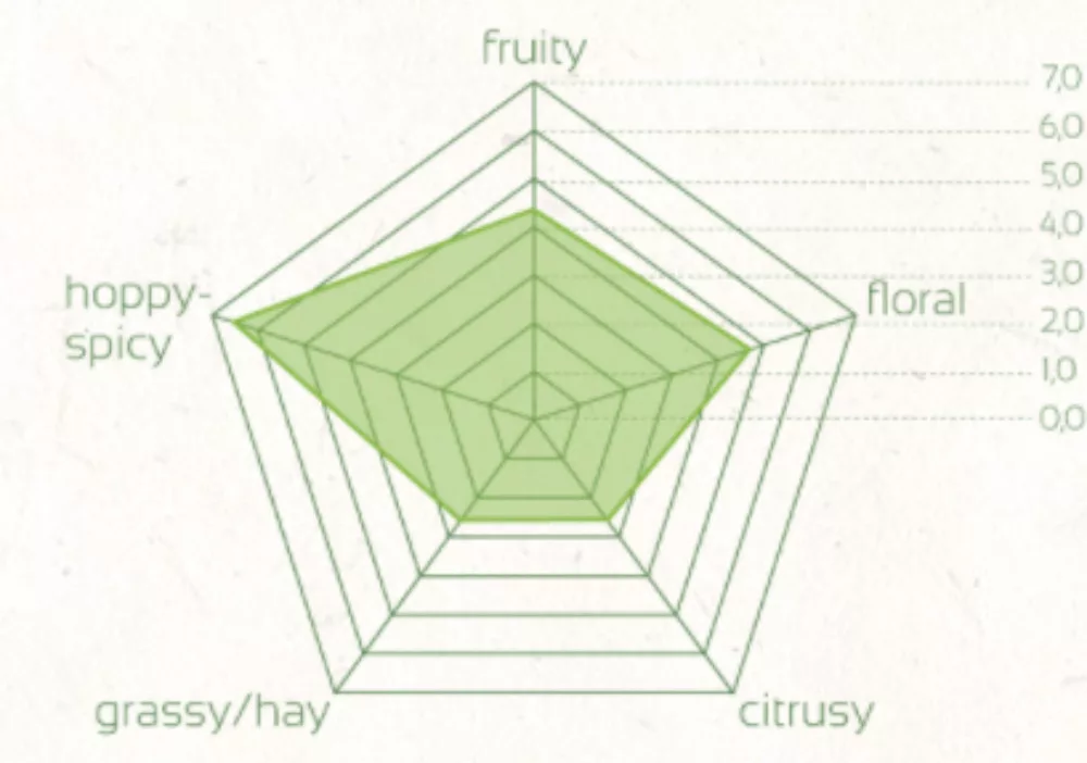 Kwas alfa 3.5 % Kwas beta3.5-4.5 % Co-humolon20-26 % Zawartość olejków0.6-1.2 %