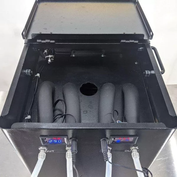 W przeciwieństwie do innych urządzeń, to urządzenie posiada 2 wbudowane pompy i regulator temperatury. Umożliwia to jednoczesne chłodzenie dwóch fermentatorów niezależnie od siebie, w różnych temperaturach.