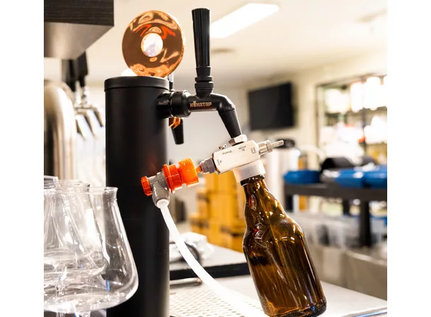 Wbudowany zawór redukujący ciśnienie pozwala dobrze regulować ciśnienie wsteczne, a tym samym prędkość napełniania. Poziom CO2, temperatura piwa i temperatura butelki wspólnie decydują o tym, jak szybko można napełnić butelkę bez nadmiernego spieniania.
