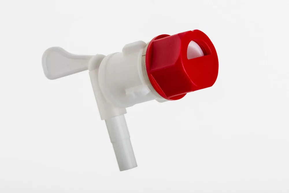 Plastikowy kranik z gwintem 3/4, który jest kompatybilny z większością zbiorników fermentacyjnych. Nakrętka oddzielająca drożdże, jeśli jest dobrze ustawiona, pomaga na końcu fermentacji utrzymać resztki chmielu i drożdży zebrane na dnie wiadra z dala od butelki.