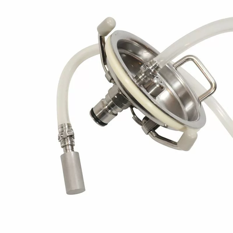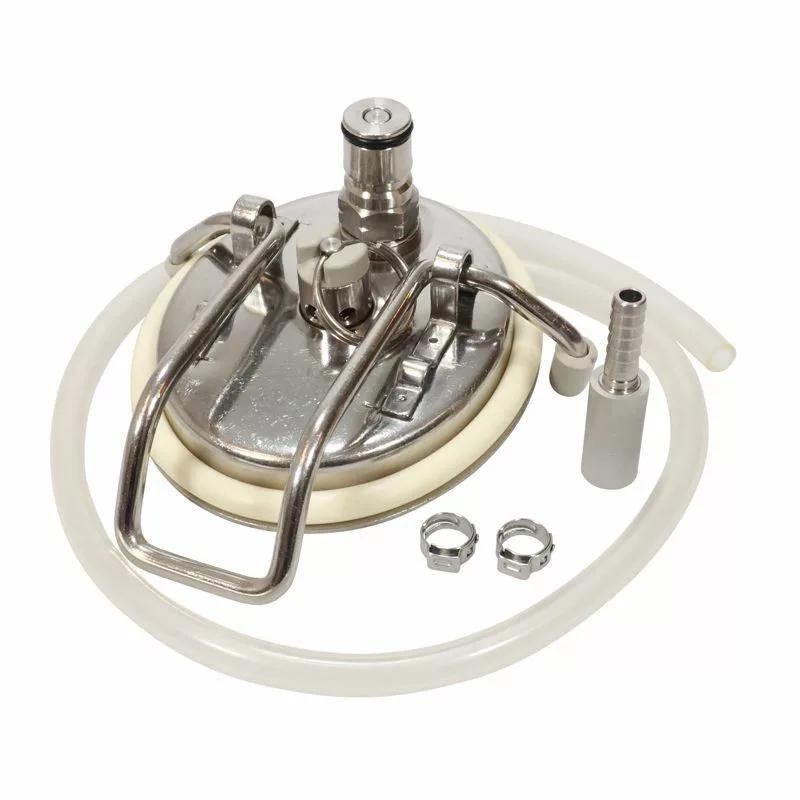 Pokrywa typu Corny z wbudowanym kamieniem karbonizacyjnym 0,5 mikrona, z rurką 60. Rurka z łatwością sięga dna beczki, dzięki czemu karbonizacja piwa przebiega bardzo szybko i bezproblemowo.