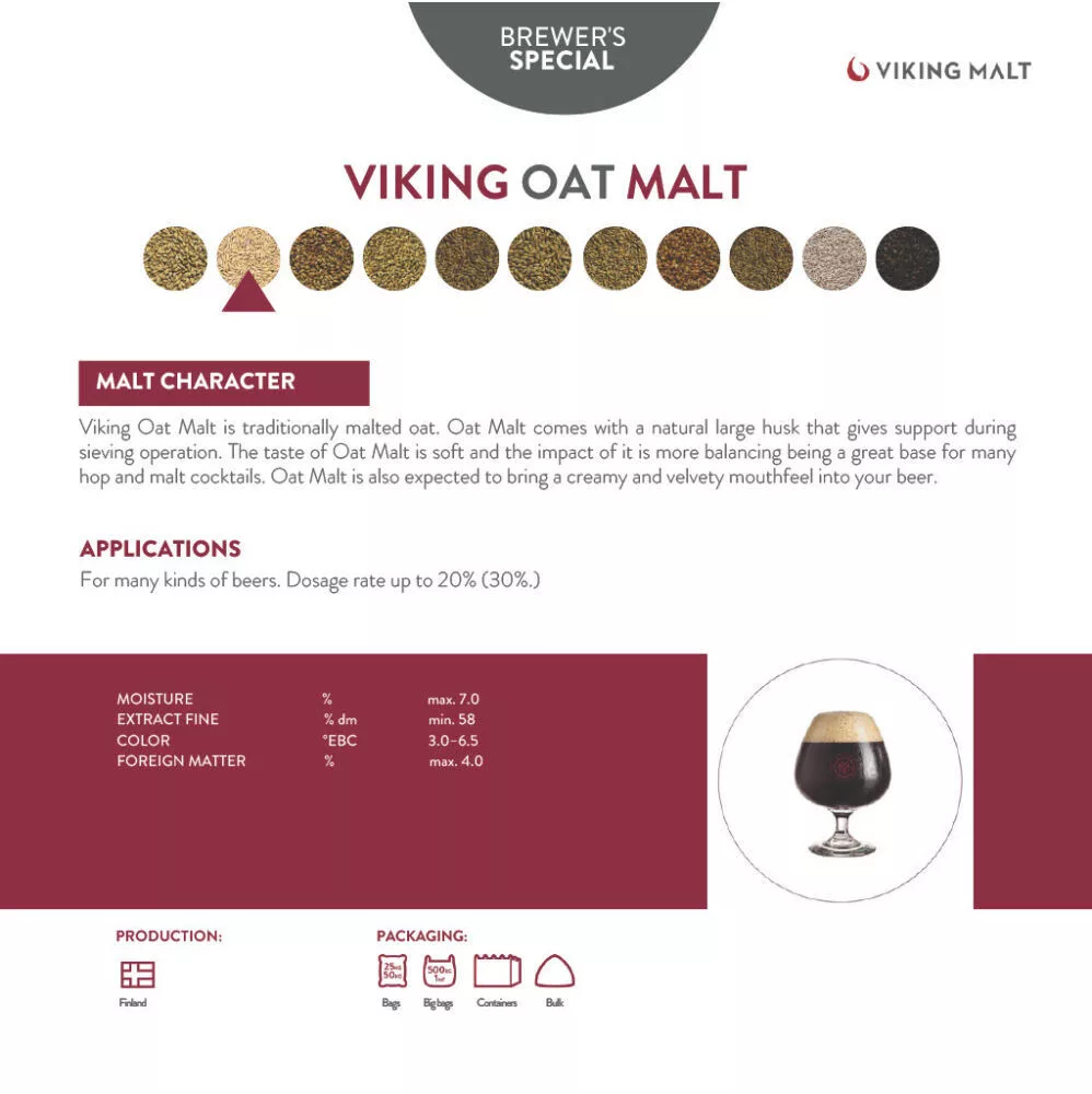 A Słód owsiany Viking to tradycyjnie słodowany owies, który ma naturalną, grubą łuskę. Ten specjalny słód doskonale wspomaga proces filtracji, ponieważ gruba łuska zapewnia stabilność i poprawia skuteczność filtracji.