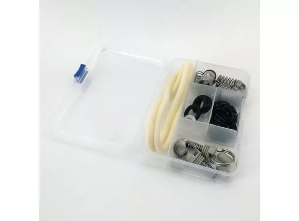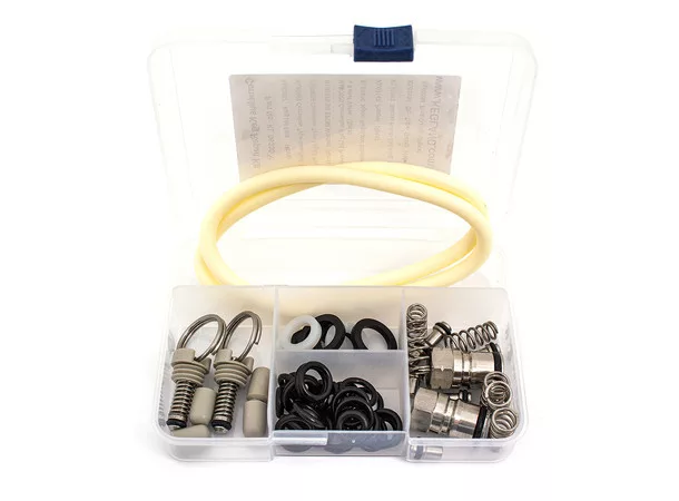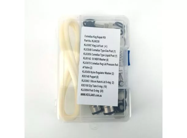 Zawiera wszystko, co jest potrzebne do naprawy beczki Corny. Dodatkowo zawiera kilka uszczelek do reduktora CO2 oraz złącza 5/8", które są często używane w kranach i innych złączach piwnych.
