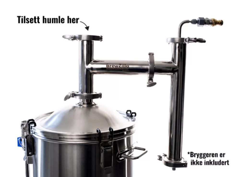 5. Dodaj chmiel itp., zdejmując nasadkę skraplacza pary lub otwierając zaciski i lekko podnosząc pokrywę.