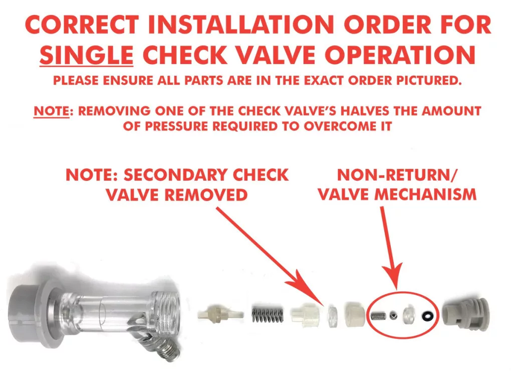Każdy, kto zajmuje się rozlewaniem piwa, z pewnością spotkał się z sytuacją, w której w wyniku nieprawidłowego kolejności rozprężania ciśnienia w systemie płyn mógł dostać się do rury po stronie gazu. W skrajnych przypadkach może to dotrzeć do reduktora lub regulatora inline. Drobne cząsteczki mogą się zakleszczyć z powodu zawartości cukru w piwie, co powoduje, że ich działanie staje się zawodne. W skrajnych przypadkach zablokowany zawór redukcyjny może sprawić, że system stanie się niebezpieczny dla życia. Aby temu zapobiec, warto zamontować w systemie zawór zwrotny. Zapobiega to przedostawaniu się piwa do rury po stronie gazowej.